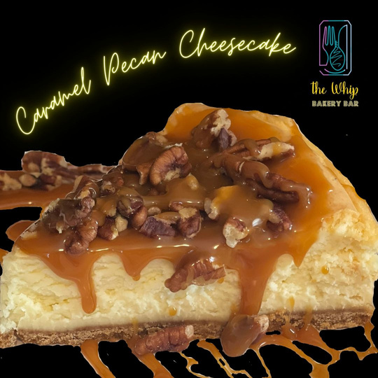 Creamy vanilla cheesecake topped with delicious caramel sauce and toasted pecan pieces!!