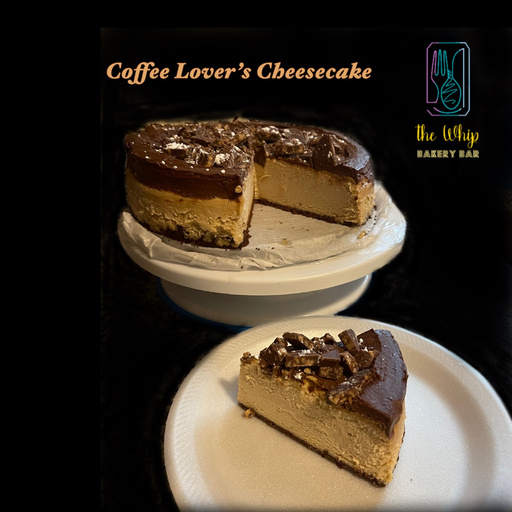 Coffee infused cheesecake on a chocolate crust. Topped with chocolate ganache and Heath toffee crumbles!